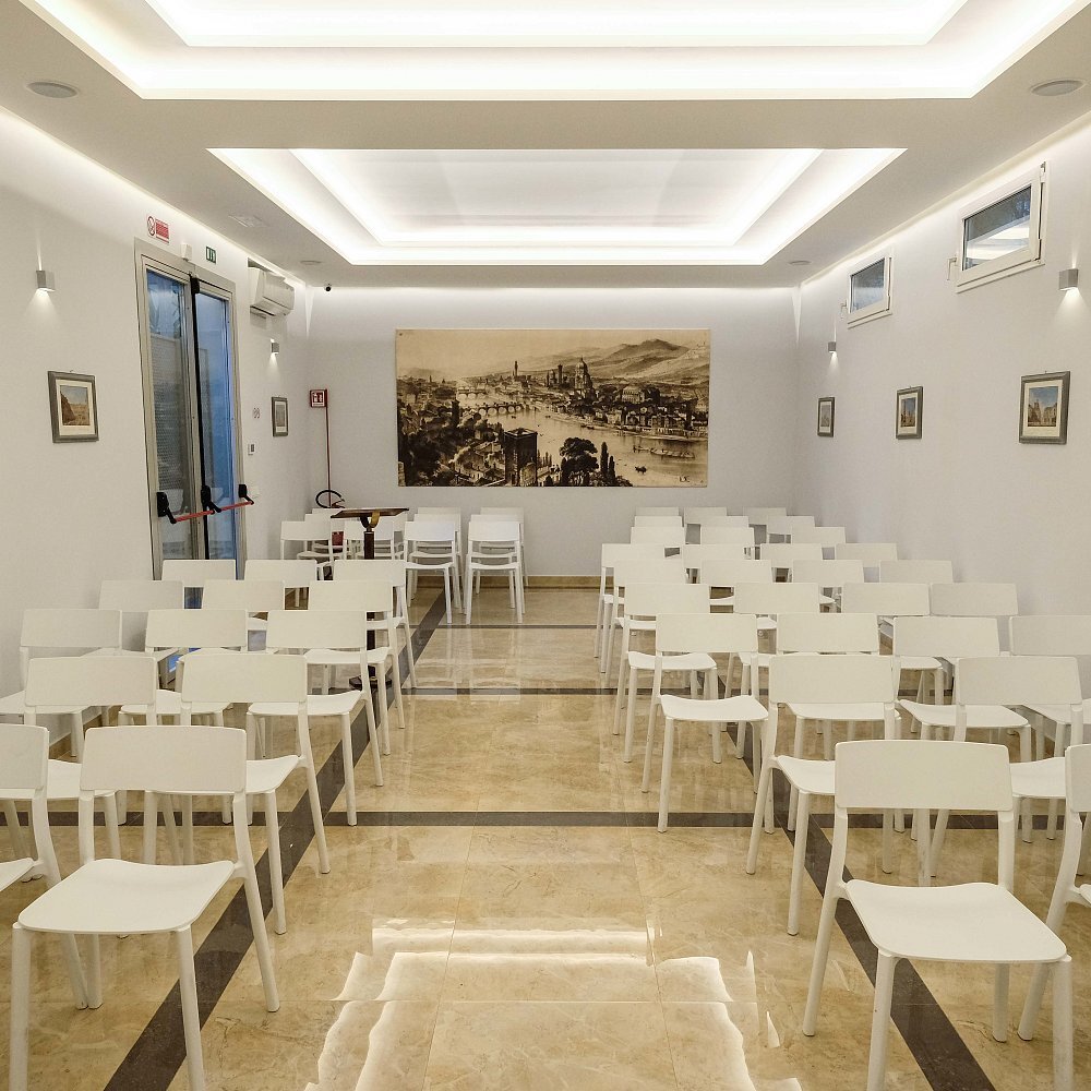 A completare i locali una sala cerimonie in grado di ospitare fino a 60 persone, in cui poter svolgere il rito funebre, sia laico che religioso, senza doversi spostare in ambienti esterni.