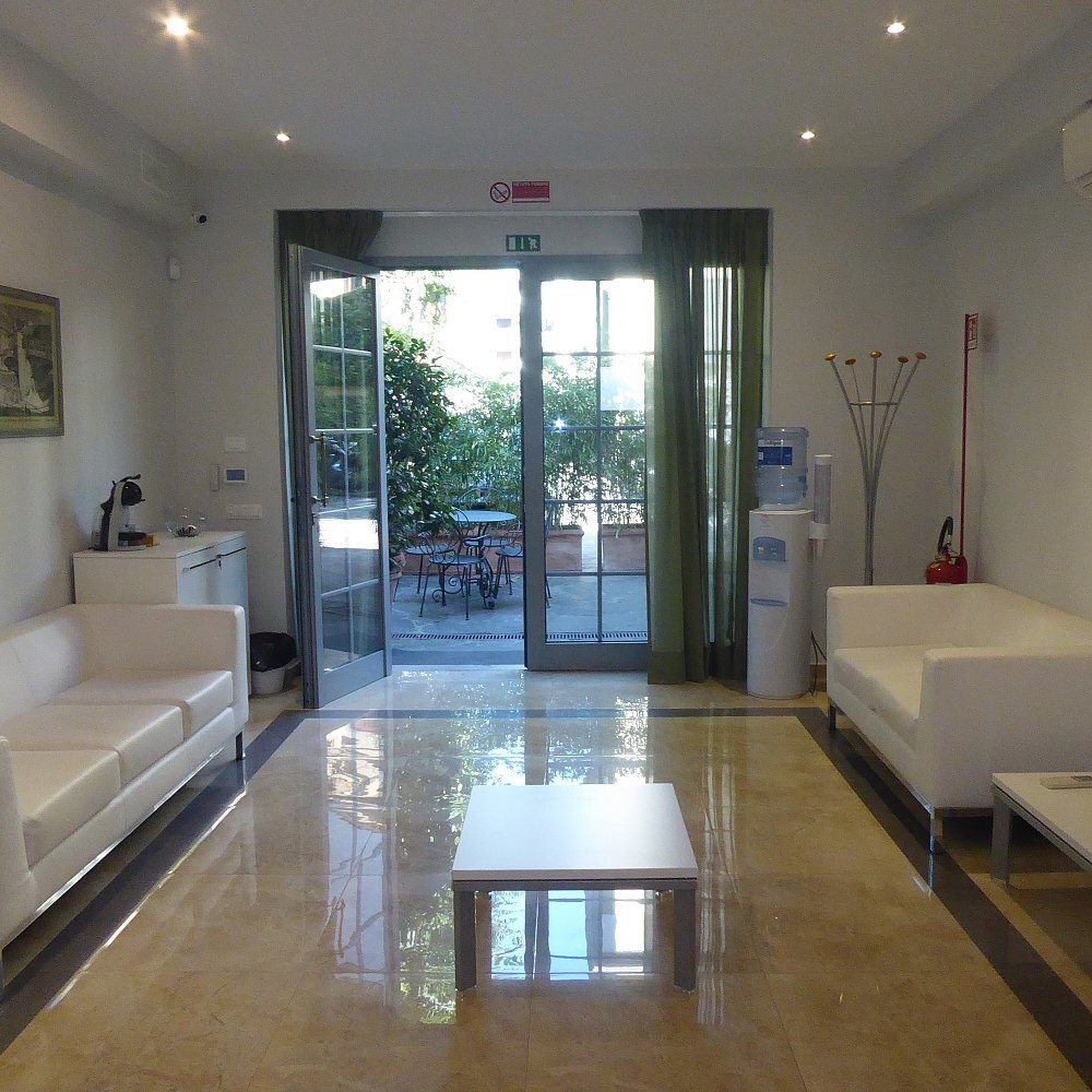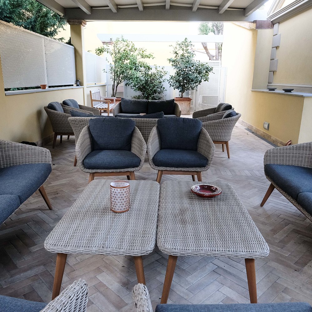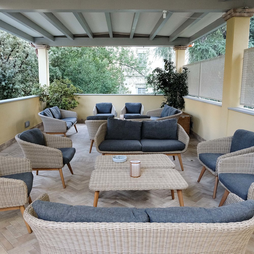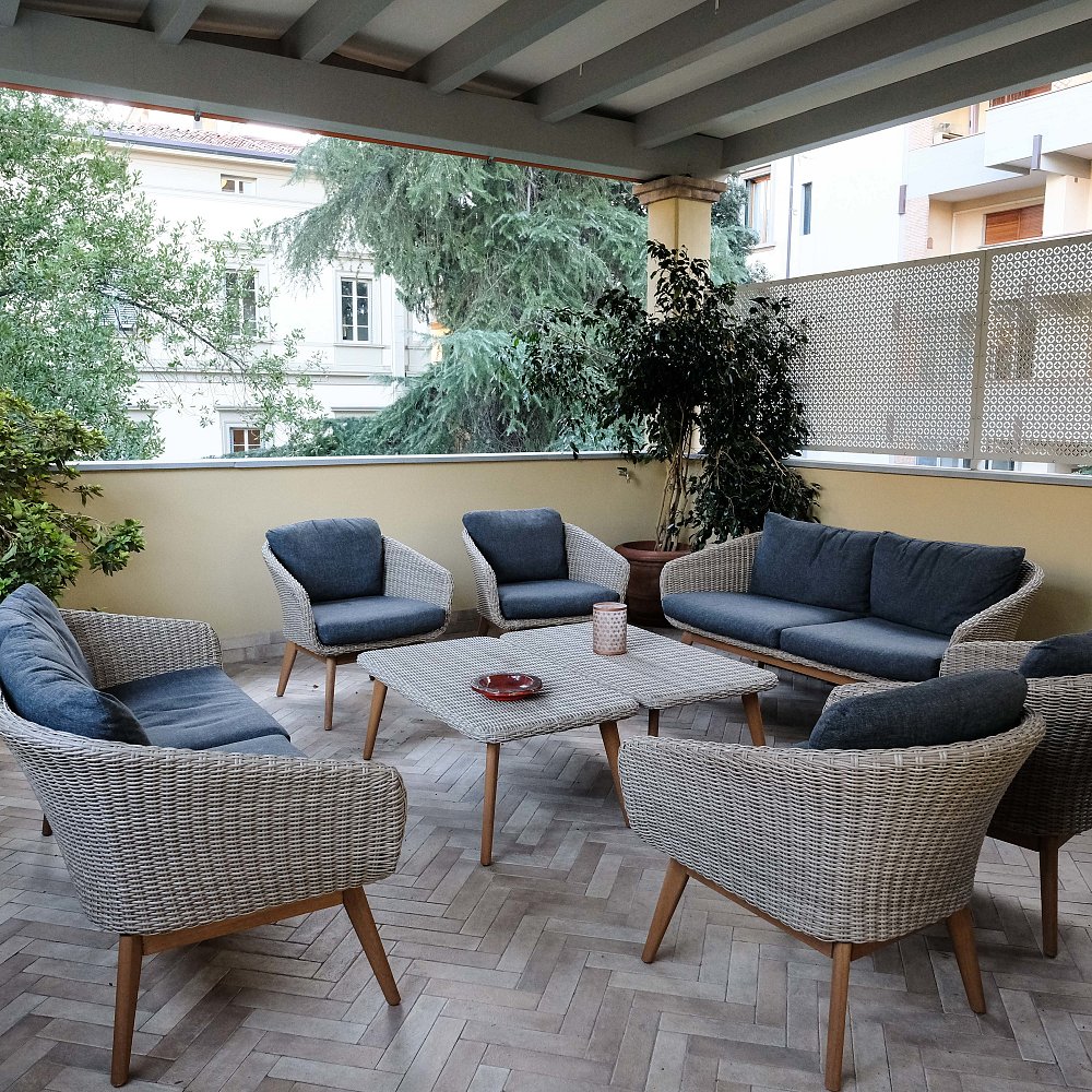 Un giardino privato ed un ampio terrazzo coperto, arredato con comodi divanetti, permettono a chi lo desidera, di trovare un proprio momento di tranquillità.