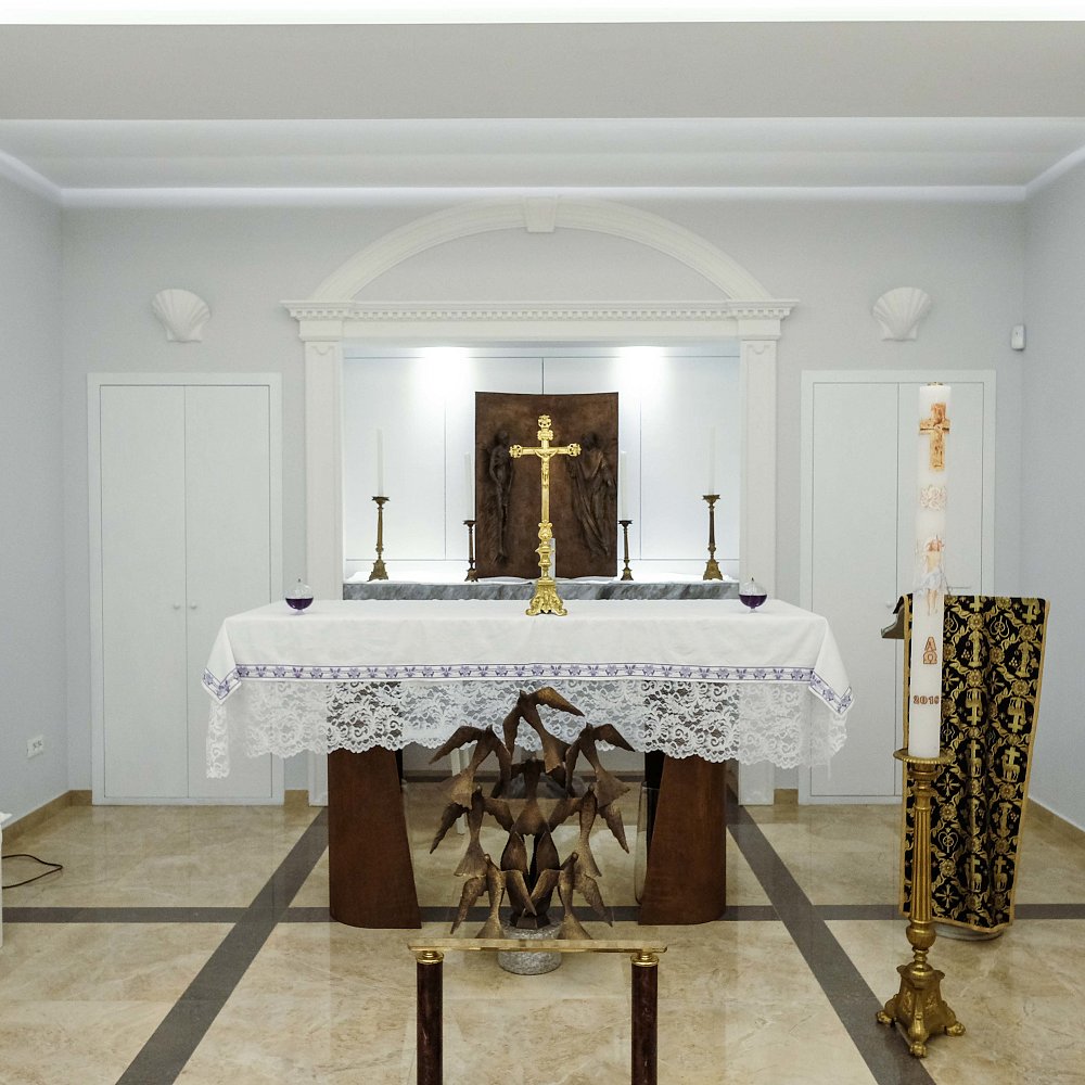 All’interno delle cappelle del commiato le famiglie possono riunirsi, stringersi intorno ai propri cari per dare l’estremo saluto alla persona defunta, tutto nell’intimità raccolta di uno spazio interamente riservato. Gli arredamenti sono eleganti e distinti: in marmo bianco, con tappeto e una quantità di seggiole, per chi vuole accomodarsi e trascorrere del tempo insieme al defunto e ai suoi familiari. L’atmosfera è sobria, essenziale, di buon gusto. Decisamente lontana da molte camere mortuarie, fredde , asettiche e impersonali. Si tratta, al contrario, di luoghi in grado di accogliere e avvolgere, di far sentire le persone a proprio agio e rassicurate.